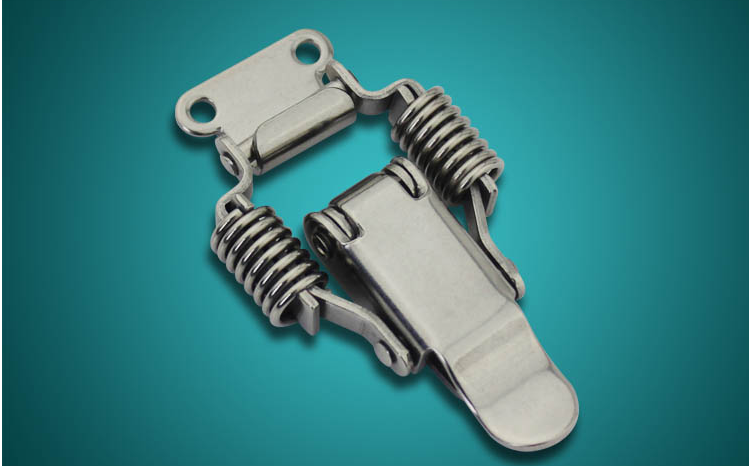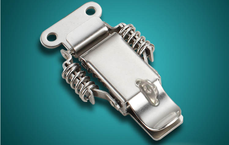 可调迫紧搭扣 螺纹调节搭扣 带挂锁搭扣 可调节扣件 不锈钢搭扣 产品特点:1.可安装于侧门和平门 2.不锈钢和铁两种材质可选 3.带螺纹调节扣,迫紧强度可调节 产品材质:不锈钢(SUS304)、铁(SPCC) 表面处理:振动研磨、镀镍